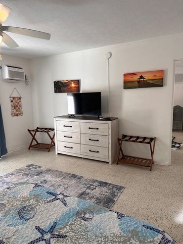 Experience old-time Florida charm in our beautiful bungalows on Anna Maria Island. These 1 bedroom/2 bed/2 bathroom bungalows are perfect for your stay. Just a 2-minute walk to the sugar sand beaches of the Gulf. We provide beach essentials like towels, a cart, and chairs for your convenience. Explore the island by taking the trolley, with a stop just steps away from your bungalow.